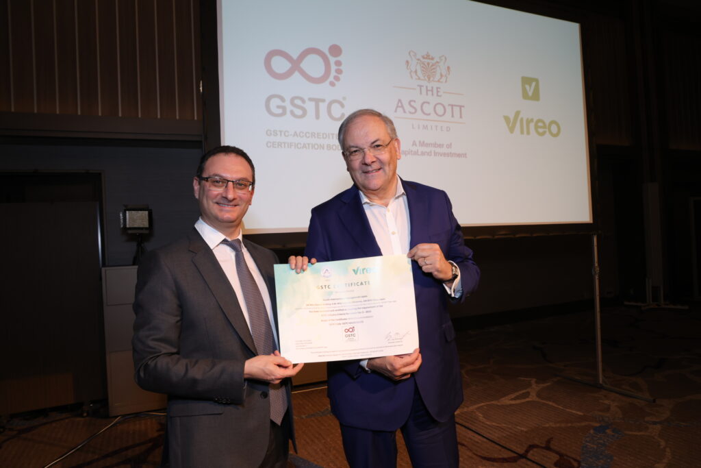 あわせて、日本におけるGSTC認証の授与式も行われました。認証を受けた株式会社アスコットジャパンは、シンガポールに本社を置き、世界40カ国以上でホテルおよびサービスレジデンス事業を展開するグローバル企業グループの日本法人として、GSTCスタンダードに基づくサステナブルな運営をグローバルに推進しています。授与式では、同社の代表取締役社長クリスチャン・ボーダー様が登壇し、Vireoジャパンの設立を祝うとともに、認証取得に向けた取り組みについて「サステナビリティは一度きりの取り組みではなく、私たちの企業文化や日々の行動に深く根付くものです。今回の認証取得はゴールではなく、これからも日本のチームとともに改善を続け、地域社会、従業員、そしてお客様に向き合い続けていくための重要な一歩だと考えています。」と述べられました。